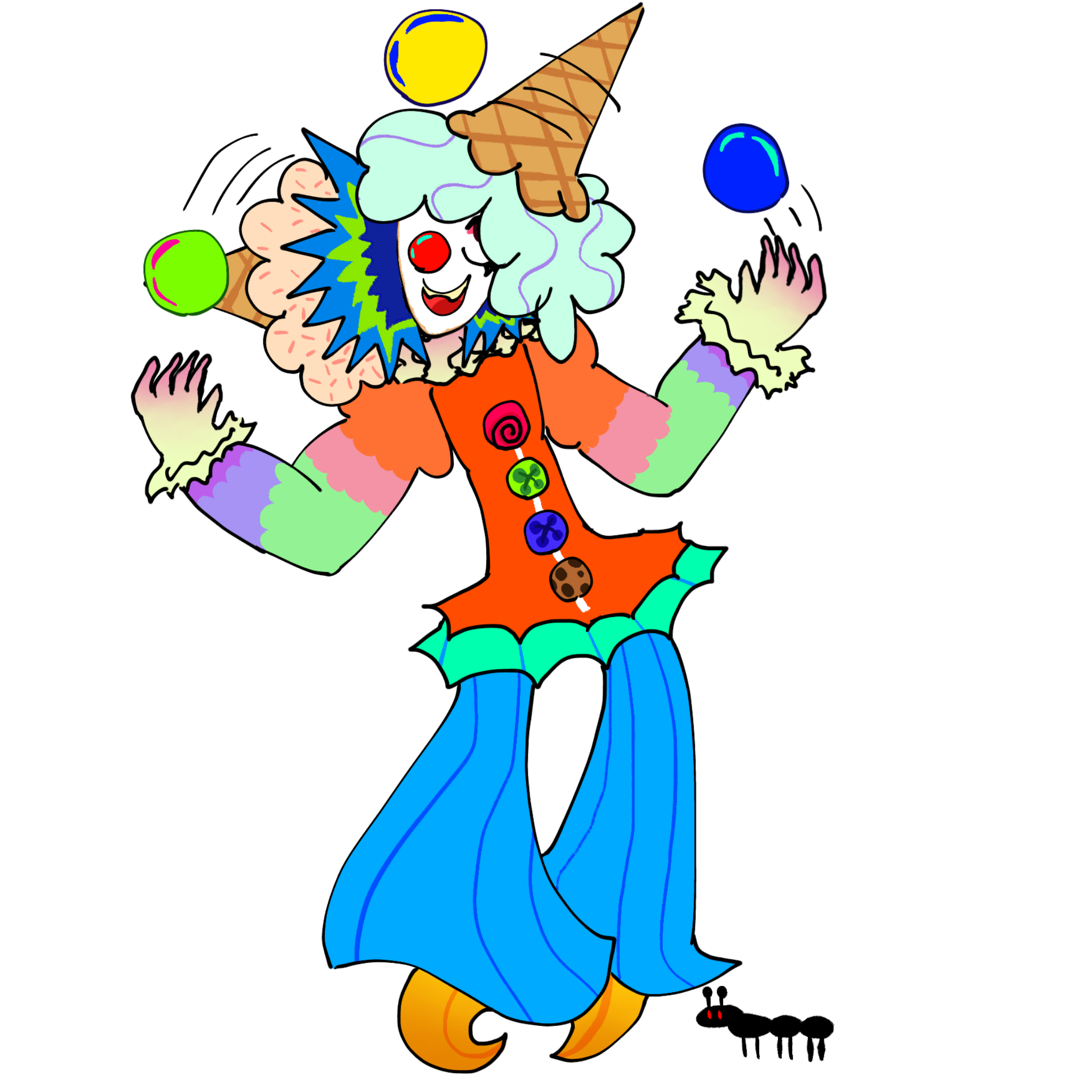 helloo, this is my oc, her name is pickle andddd she's a clown and works in a circus in fairs and stuff. she has a little pet ant named ketchup,,,, and thats it ill update more stuff here soon.
